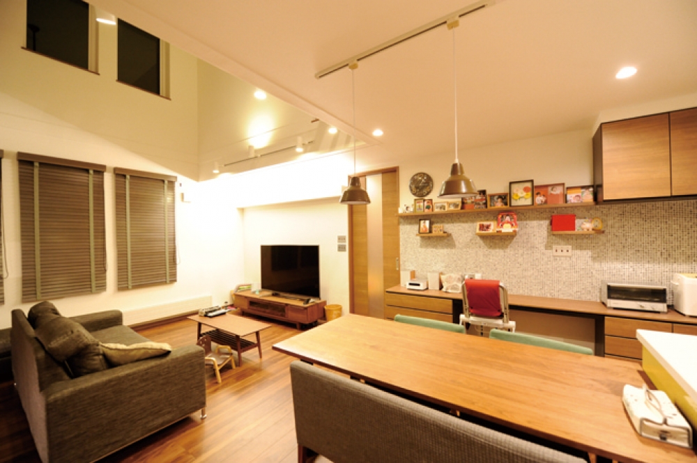 子どもがキッチンのまわりや2階をぐるぐると走り回り、その姿を見守りながら大人も寛いで過ごせます。